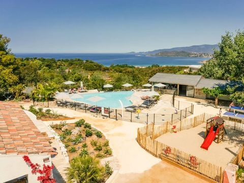 Im Süden Korsikas, nur 700 Meter vom Meer entfernt, erwartet Sie dieser familienfreundliche Campingplatz mit einem beheizten Außenpool, der zum Schwimmen und Entspannen einlädt und dabei einen herrlichen Blick auf das Mittelmeer und die umliegende Landschaft bietet.Während der Sommerferien werden tagsüber und abends abwechslungsreiche Familien- und Kinderaktivitäten angeboten, sodass jeder Gast auf seine Kosten kommt.Zu den Serviceleistungen zählen ein Snack-Bar mit Speisen zum Mitnehmen oder Verzehr auf der Terrasse, ein Laden mit regionalen Spezialitäten sowie ein täglicher Brötchenservice für einen komfortablen Aufenthalt.