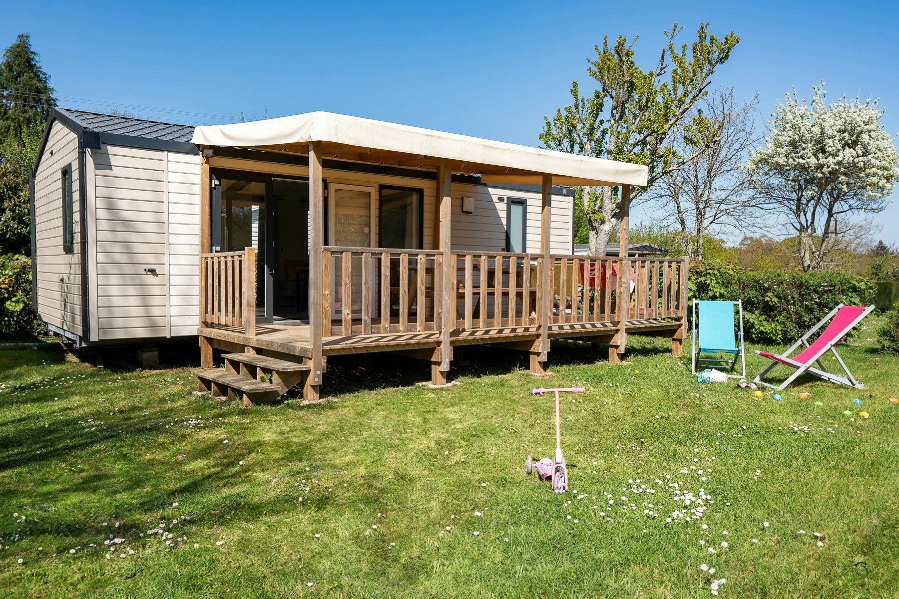 Auf Camping Ty Nénez haben Sie die Wahl zwischen verschiedenen Unterkunftsmöglichkeiten. Ob Sie ein Zelt aufstellen, einen Wohnwagen mieten oder in einem komfortablen Mobilheim übernachten möchten, hier finden Sie die passende Lösung. Die Stellplätze sind großzügig bemessen und bieten ausreichend Platz für Ihr Equipment.