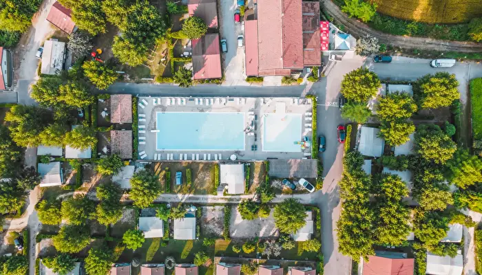 Ruhiger Campingplatz mit Pool am Gardasee Möchtest du auf einem ruhigen Campingplatz ganz in der Nähe des Gardasees Urlaub machen? Iris Park liegt inmitten einer grünen Landschaft, umgeben von sanften Hügeln, Olivenhainen und Weinbergen. Der Gardasee ist nur 1,5 km entfernt. Dieser entspannte Campingplatz ist ideal für Familien und alle, die Erholung suchen – aber auch für aktive Camper. Du verbringst deinen Aufenthalt in einer naturnahen Umgebung, mit dem Gardasee, charmanten Dörfern und tollen Ausflugszielen ganz in der Nähe. Schöne Pools und Spielmöglichkeiten Im Zentrum des Campingplatzes findest du zwei Schwimmbäder. Ein größeres Becken mit Sprungbrett, perfekt für ältere Kinder und Erwachsene. Dazu gibt es ein Kinderbecken mit Rutsche und einer maximalen Tiefe von 50 cm. Rund um die Pools kannst du es dir auf einer Liege bequem machen und entspannen – entweder in der italienischen Sonne oder im Schatten deines Sonnenschirms. Die Kinder haben Spaß beim Tischtennis oder auf dem Spielplatz mit Sandkasten, Rutschen und kleinen Spielhäusern. Spaß mit Animation und deinem Haustier Iris Park bietet ein Animationsteam, das abwechslungsreiche Aktivitäten für Kinder und Erwachsene organisiert. Freu dich auf Sportangebote, Spiele und unterhaltsame Abendprogramme. Für ein leckeres Essen, einen Snack oder ein Getränk musst du den Campingplatz nicht verlassen. Vor Ort gibt es eine Bar mit Terrasse, eine Pizzeria und einen Imbiss. In der Bar bekommst du Frühstück, Mittagessen oder einen Aperitif. Und für einen schnellen Happen oder ein hausgemachtes Eis bist du im Snackbereich genau richtig. Außerdem findest du auf dem Campingplatz praktische Einrichtungen wie warme Duschen, Babybereiche und barrierefreie Badezimmer. Und auch dein vierbeiniger Begleiter ist herzlich willkommen. Entdecke den Gardasee und die charmante Umgebung Iris Park hat eine ideale Lage am Gardasee. Besuche zum Beispiel das lebendige Zentrum, den Hafen und die gemütlichen Märkte von Desenzano (10 km). In Sirmione (ca. 15 km) erwarten dich eine beeindruckende Burg, römische Ruinen und Thermalbäder. In der Umgebung findest du außerdem das Weinanbaugebiet Valtenesi (21 km) sowie beliebte Freizeitparks wie Canevaworld (35 km) und Gardaland (32 km).