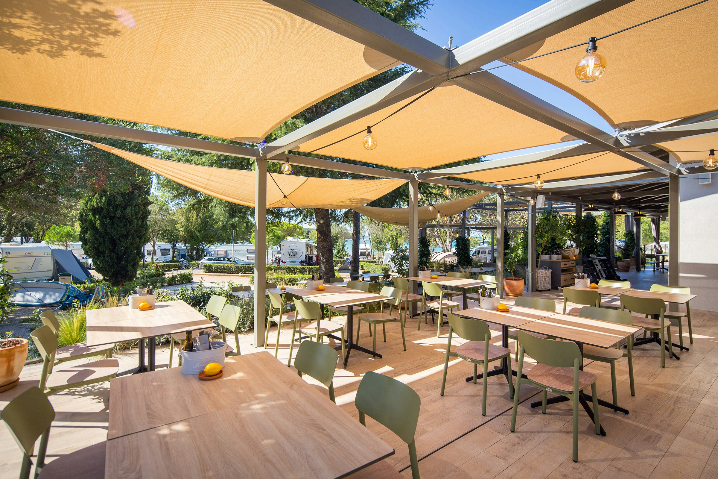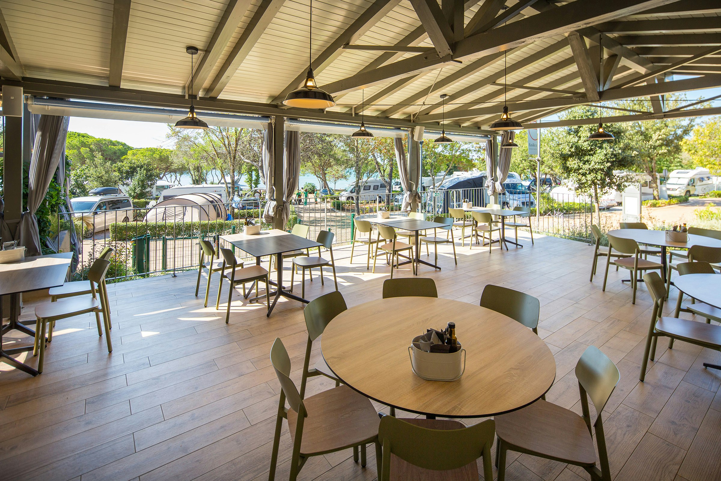 Auf dem Campingplatz gibt es ein Restaurant, das lokale Spezialitäten und internationale Gerichte serviert. Außerdem können Gäste im Kiosk oder Campingladen grundlegende Lebensmittel und Campingbedarf erwerben. Der Brötchenservice sorgt dafür, dass Sie jeden Morgen frische Brötchen genießen können, ohne das Camp verlassen zu müssen.